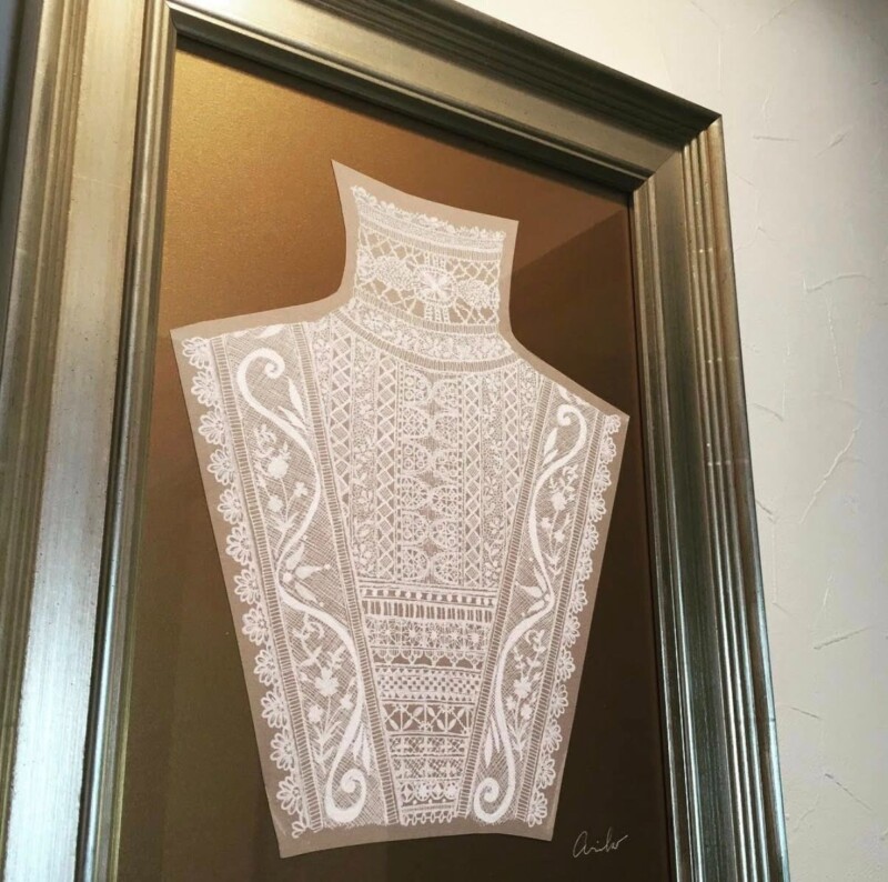 スタンドカラーのブラウスを描いた一枚の絵。